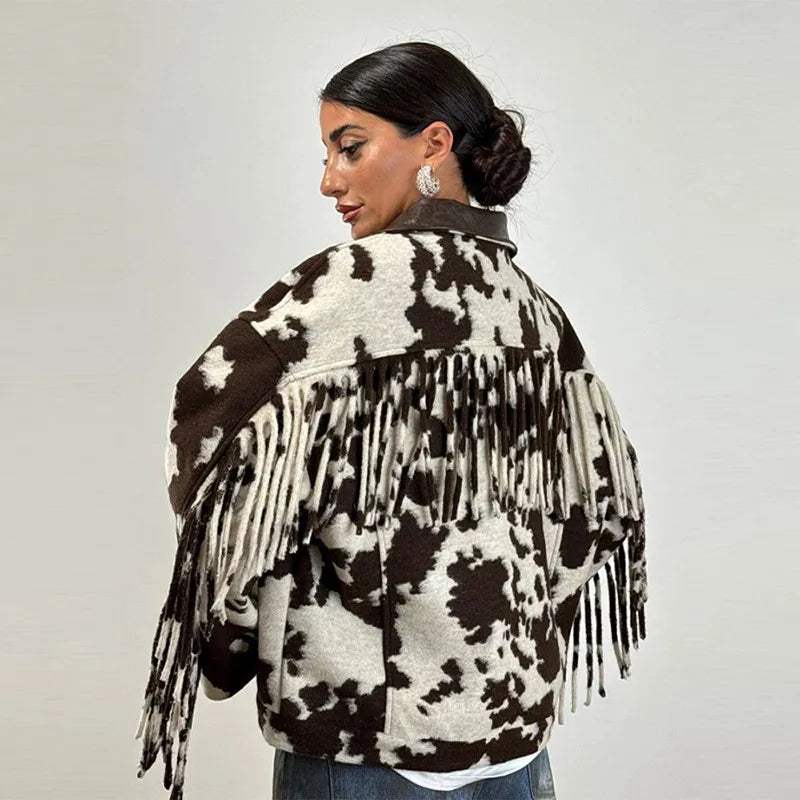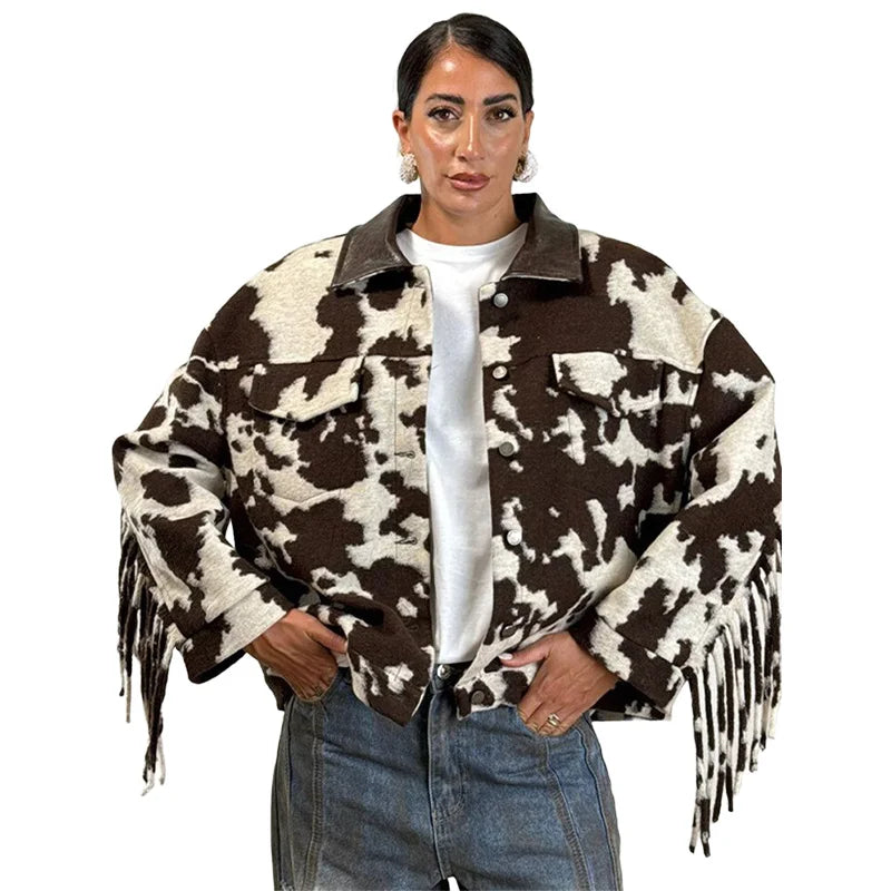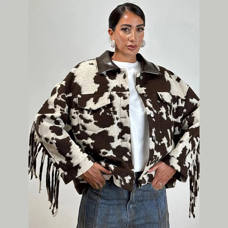 Make a statement this season with our Women’s Chic Tassel Print Winter Coat, a perfect fusion of retro American flair and modern UK street fashion. Designed for those who appreciate individuality and artistry in their wardrobe, this coat’s tassel detailing, contrast lapel, and loose-fit cut embody free-spirited elegance.