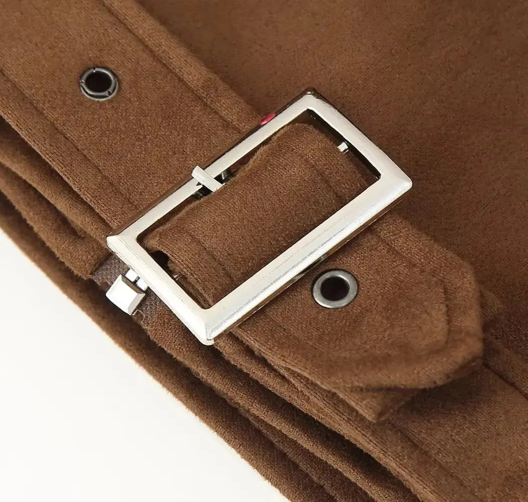 Our retro autumn coat with zippers delivers a heritage look, reimagined for today’s woman. The decorative zippers and turn-down collar evoke that sought-after vintage allure, while the suede-look fabric provides the warmth and softness perfect for chilly British evenings.